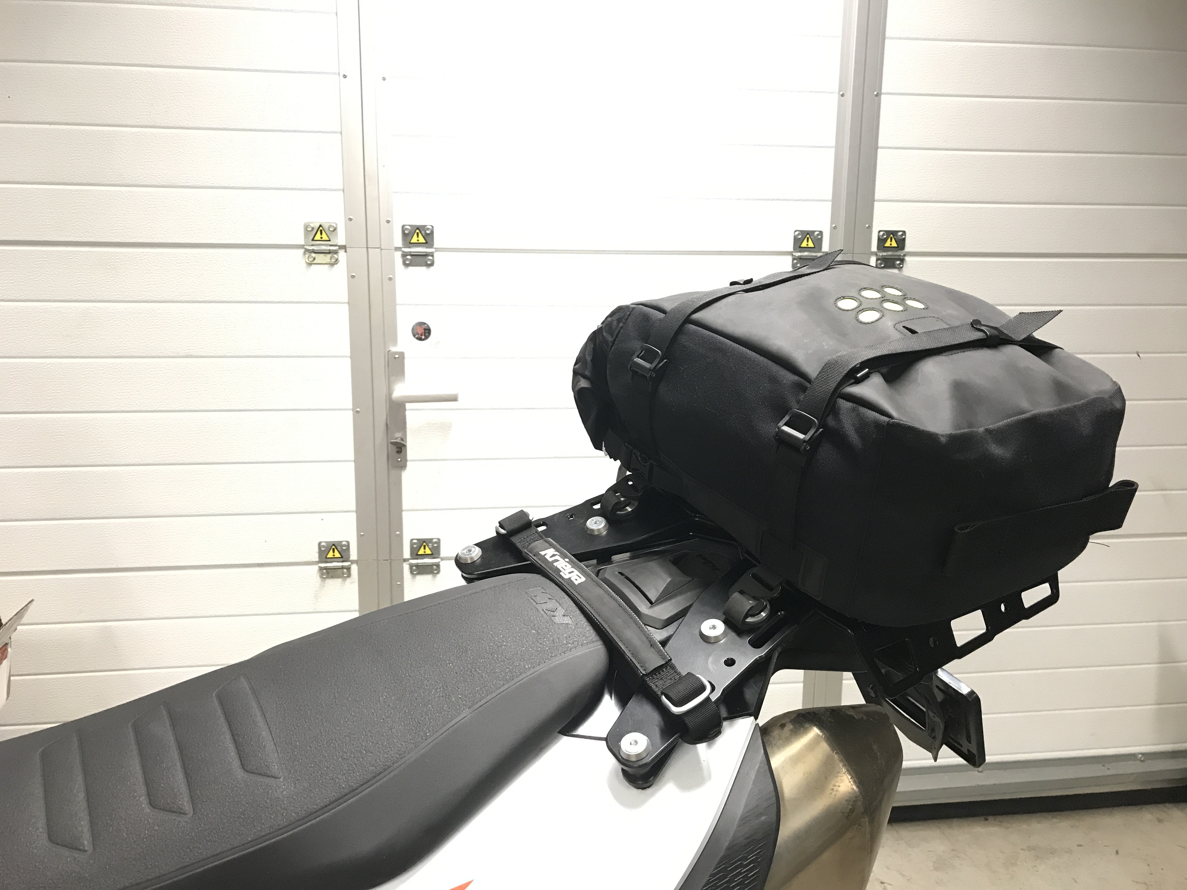 3. Funktsionaalsuse osas olen teinud raske otsuse ja loobusin MoskoMoto Backcountry kottidest. Nende raamidele paigaldamine on ülimugav (nagu kohvrid), kuid kaal tuleks lihtsalt kosmiline: 8kg 2 tühja kotti + 4,5kg raamid... Istmekotid (näiteks Kriega OS-18 + OS-Base) on kokku 2,7kg.