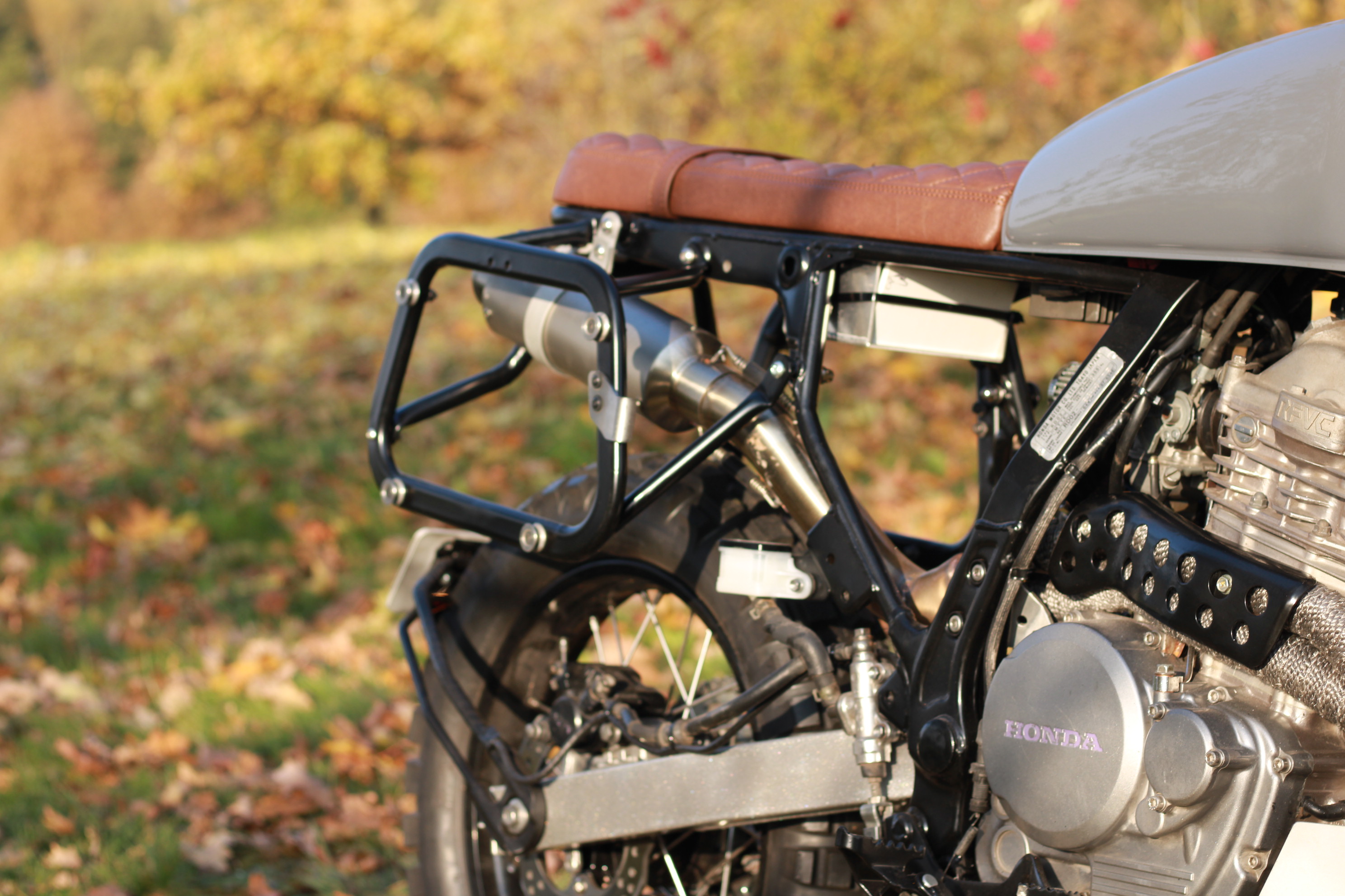 Selles mõttes valel pool, et teisel tsiklil käivad need vastupidi. Vasak paremal ja parem vasakul. Lukud vist peaks tagapool olema. Aga see pole üldse oluline. Nende raamide kaugus on arvestatud mul nii, et kohvrite välimine kaugus on võrdne. Sellest tulenevalt see raami kaugus sumpsist ka selline.