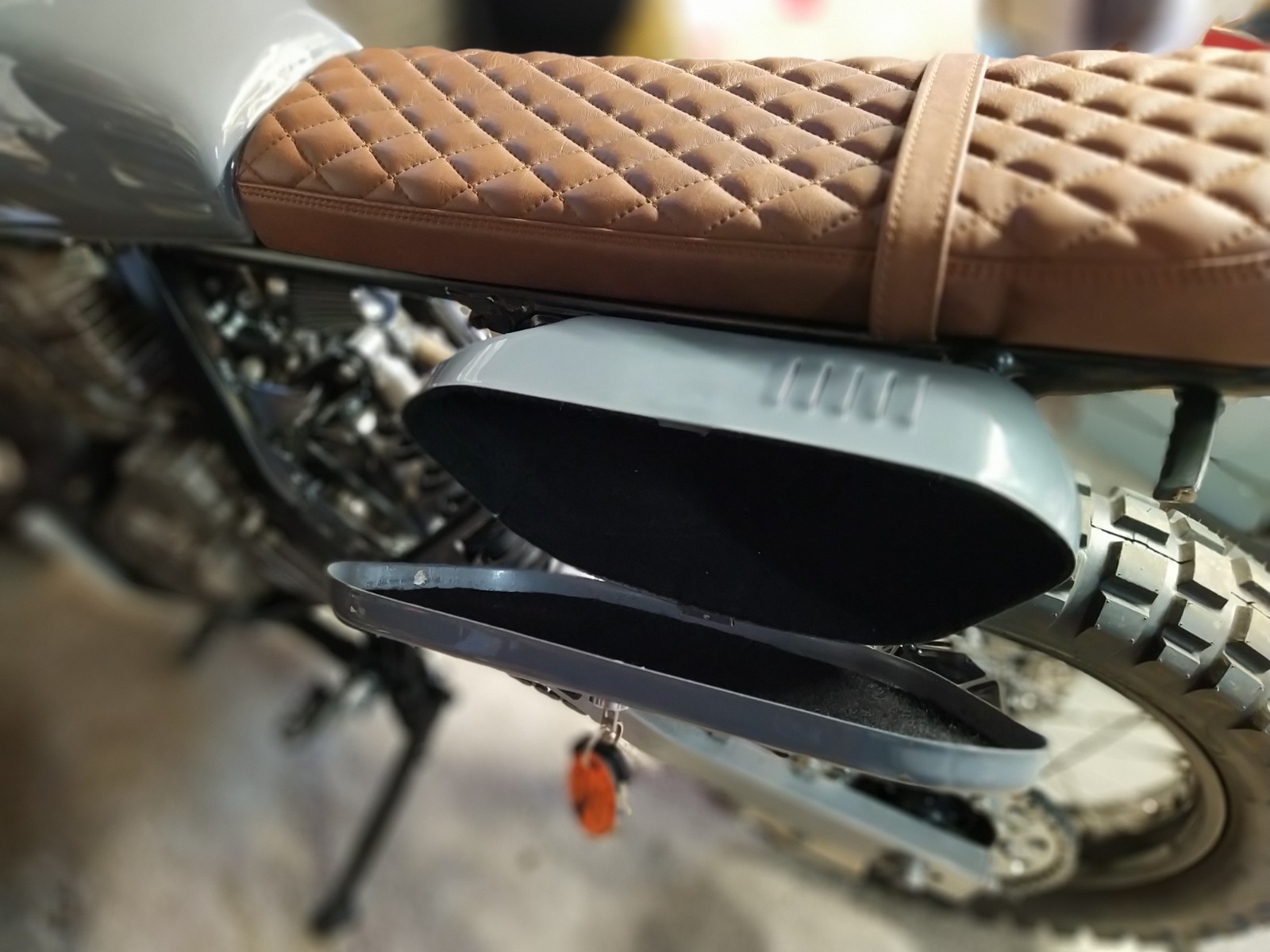 No hea küsimus tegelikult. Kuna ma eriline pubitaja ei ole siis pigem tahtsin lihtsalt näha kuidas passivad. Iseenesest on hea kui minna kuhugi üritusele, saab oma kola sisse panna - telk vms. Kombineerida on võimalik siis kas väike kohver või suur jne. Vb tuleb millalgi isu kuhugi sõita, siis ei pea kotti selga toppima. Ainuke miinus see, et siis saab ainult üksi sõita. Aga no naine mul nagunii pole eriline sõiduhuviline. Tagumised jalarauad ka eemaldatud. Teen taha vasakule veel eraldi ühe Väikese kopsiku mingist vanast vene ratta õhufiltri Kopsikust. Vaja ära värvida. Saab mingi joogipudeli vms sisse panna. Eks näis kas sobib