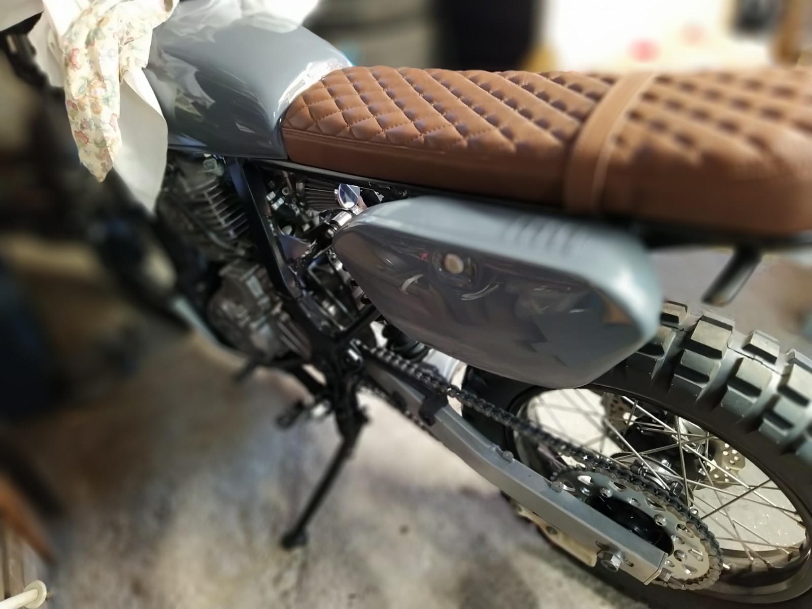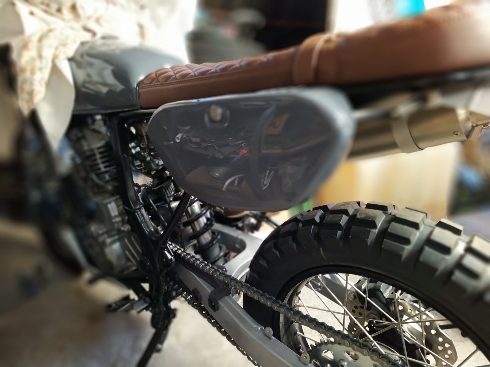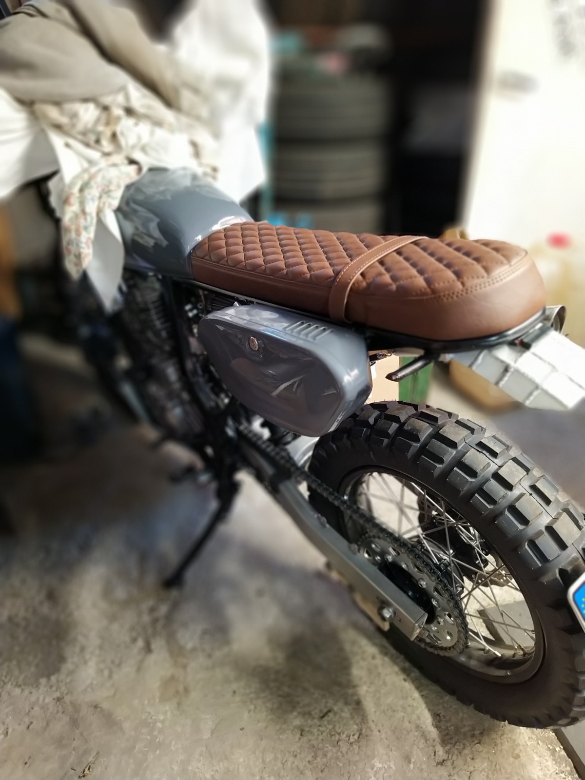 Igastahes on minu ratas nüüd selleks aastaks valmis. Sõitma ka ilmselt ei kipu enam. Juhtus paar kuud tagasi pisike äpardus, kus sai külili käidud ja ausalt öeldes jalg annab siiamaani tunda. Viimasel ajal üldse nagu pole viitsimist peale istuda. Sai lapsele pisike 50ne ostetud ja nüüd vaikselt enda kogemuste põhjal üritan teda liikuma saada. Vahepeal on päris hirmus vaadata. Aga tagasi tulles enda "projekti" juurde. Sai siis asi enamvähem suures piires valmis. Mõned asjad tahavad veel kohendamist. Näiteks istme alune aku kinnitus tuleb ringi teha sest esialgne mõte tundus kohe vale, kui külge sai. Praegu hoiab akut nipukas kinni. Lisaks pean talvel mootori ülemise osa lahti kiskuma. esitulede lahendus mulle ka väga ei istu, aga kuna pole veel leidnud õiget tuld ette, siis niikaua las olla - maitse asi. Kui muidu enamvähem valmis oli, siis aretasin kohvrid ka külge