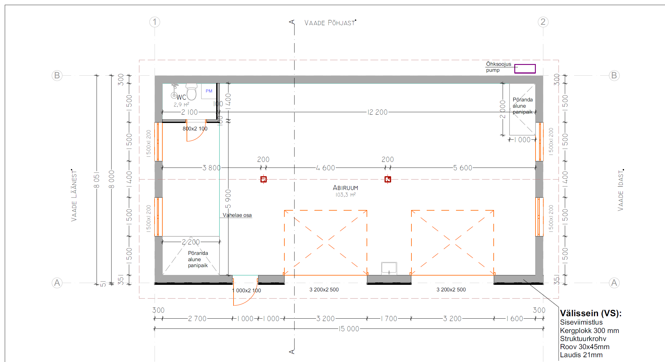 Väga õige, kasutada ära loomulikku valgust. Katuseaknad annaksid korralikult valgust ruumi juurde. Ja valgust pole garaažis kunagi liiga palju või üldse hoonetes. Võimalusi veel valgust lisaks saada, akendega garaažiuksed, aknaga tavaline uks, või sinna lõunaküljele ukse kõrvale aken. Kui vool peaks ära olema või WC's pirn läbi, võib ka WC ukse teha mingi sellise klaasiga, mis õrnalt valgust läbi kumab või teha sinnagi mõni siseaken (näiteks ida suunas väike aken, mis asub kõrgel).