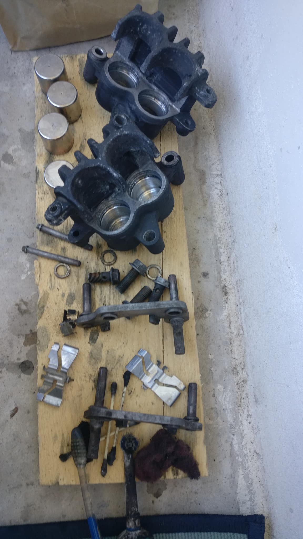 Ehk siis päev või kaks enne reisi oli vaja vanad toimima saada. Esimesed said peale puhastust kokku laotud ja kõik kolvid hakkasid liikuma, pidur sai tunduvalt konkreetsem ja jäigem. Vibratsiooni äkkipidurdamisel enam ei tekkinud.