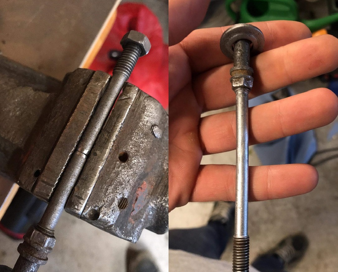 Kuna tagumise piduri hooba ei kannatanud rohkem painutada siis sai otsustatud reguleerimisvardalt 7mm vahelt välja lõigata ja kokku tagasi keevitada ning otsasta ka pool cm lühemaks teha.