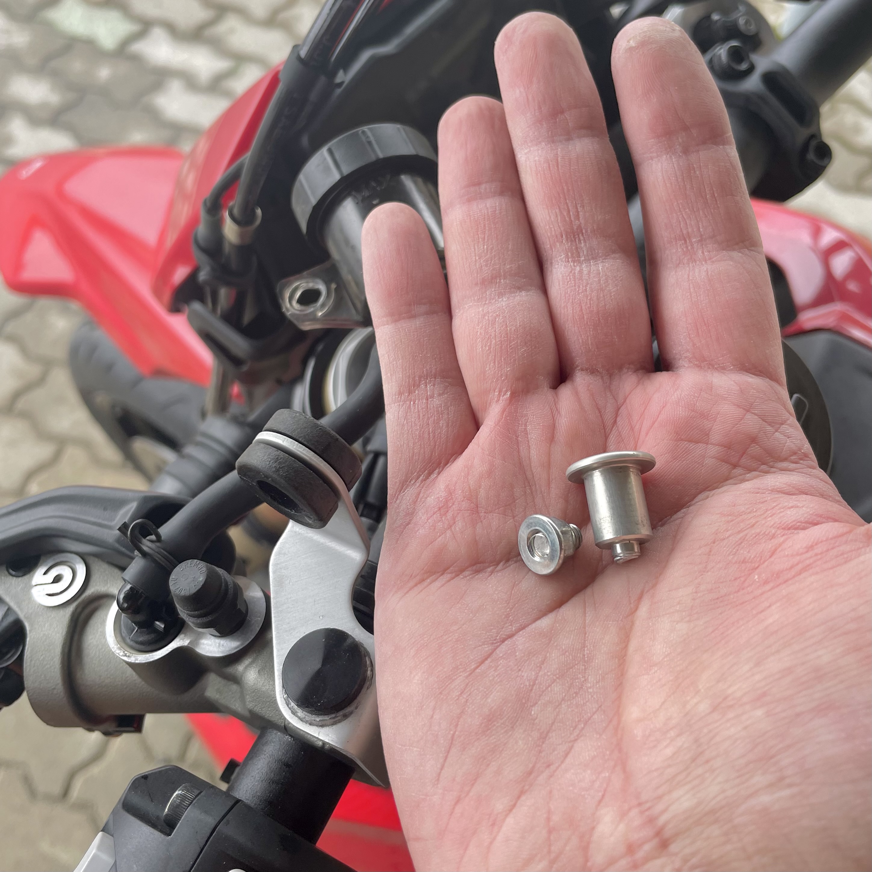 Tegelt teema selles, et sain uued peeglid kätte ja hooga kruvisin käepidemete külge, aga kui hakkasin vanu peegleid maha keerama, tuli välja, et need neetud originaalpeeglid hoiavad ka vedelikupotskasid ratta küljes..