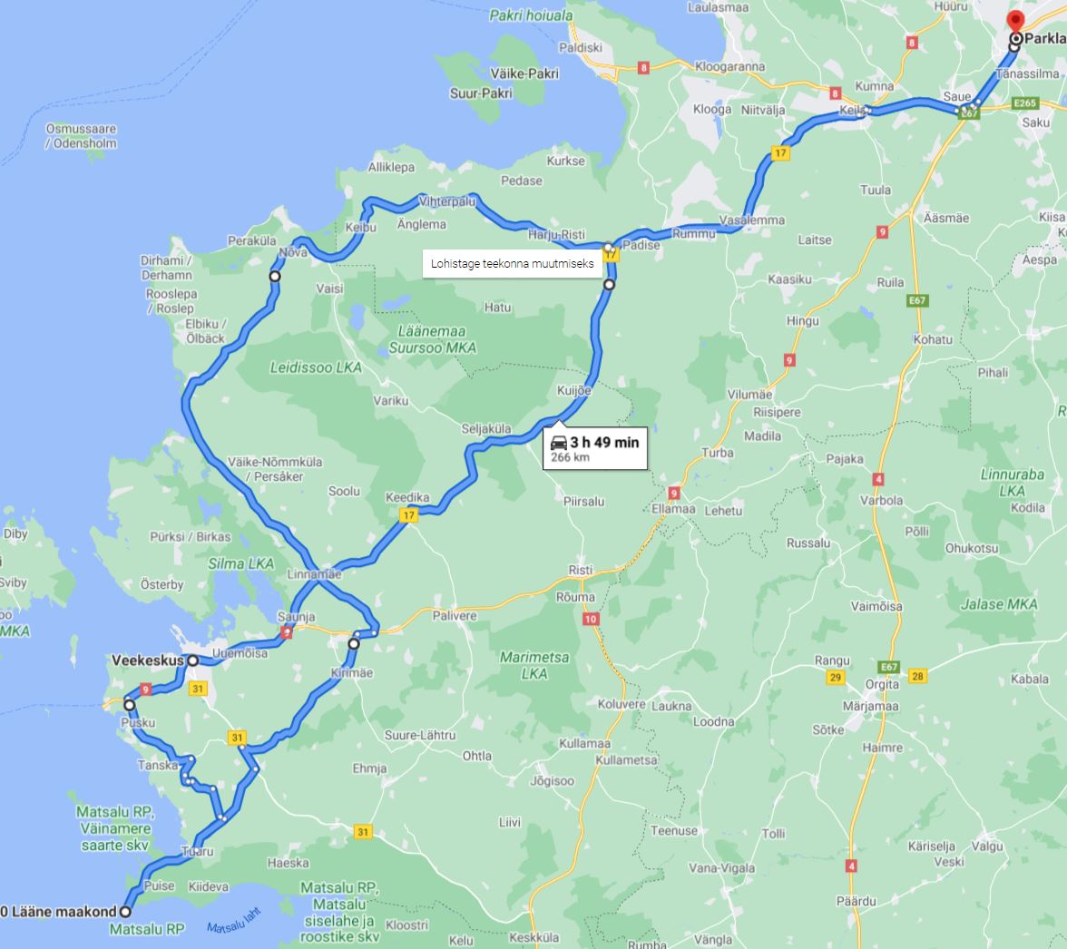 Ringiks mõtlesin midagi sellist (~110km): https://goo.gl/maps/2WwVRbTZTJ5vUd9m9