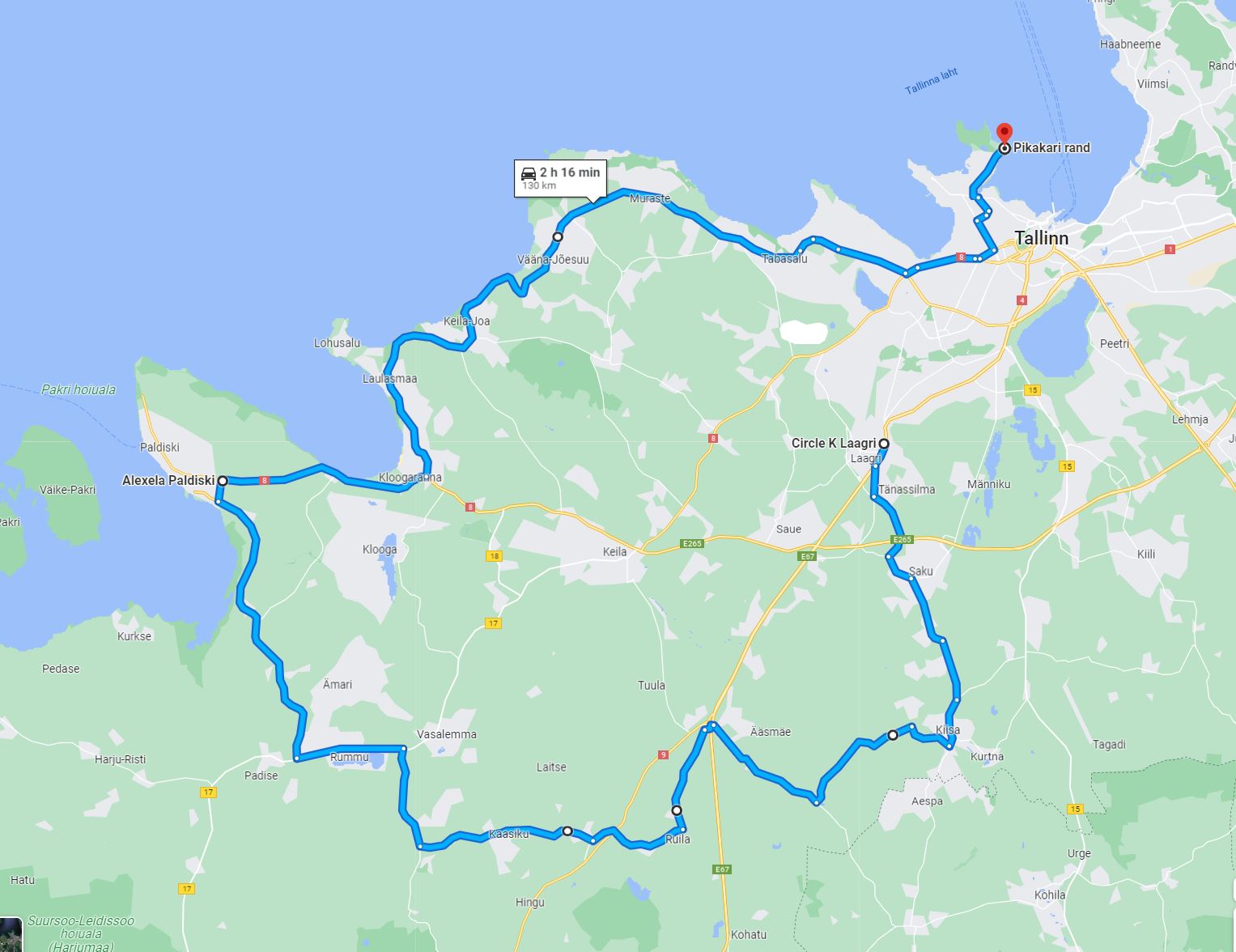 kas tuled kloogalt läbi ja paldiski poole ning padise kaudu ja otse läbi keila tagasi?