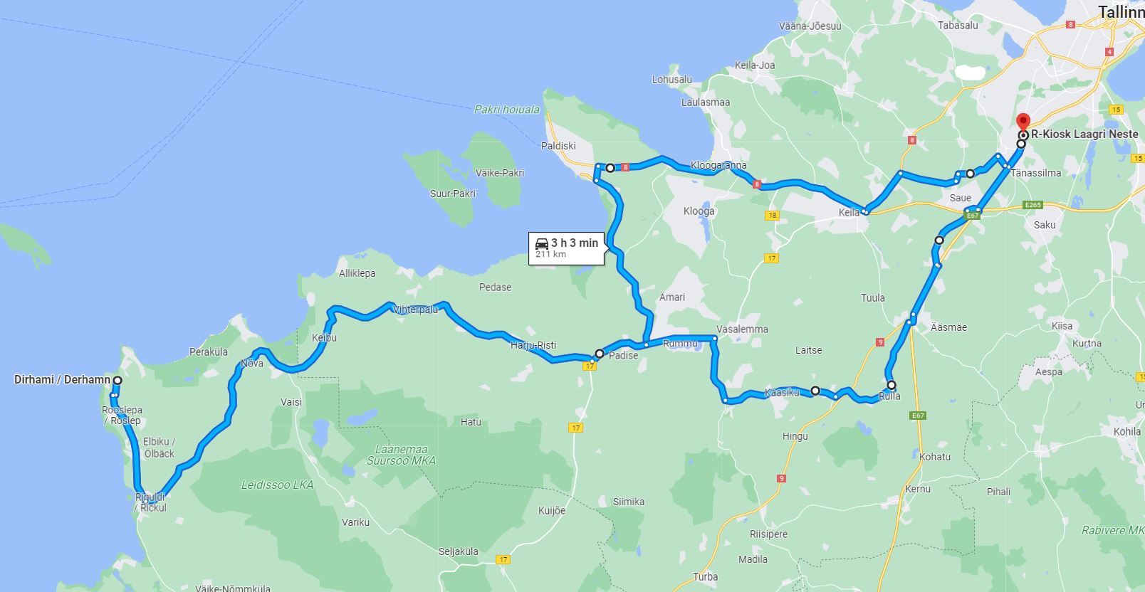 Maps näitab 2 tundi ja 45 minutit. Palju sellest kiiremini või aeglasemalt sõidetakse tavaliselt?