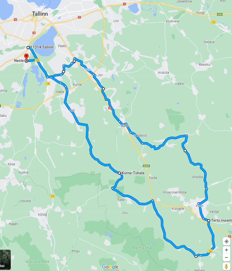 Ringiks midagi sellist näiteks (Kiili, Nabala, Urge, Kohila, Hageri, Kiisa, Saku, TLN =~85km) https://goo.gl/maps/xKfrDErbjPCTNo3CA