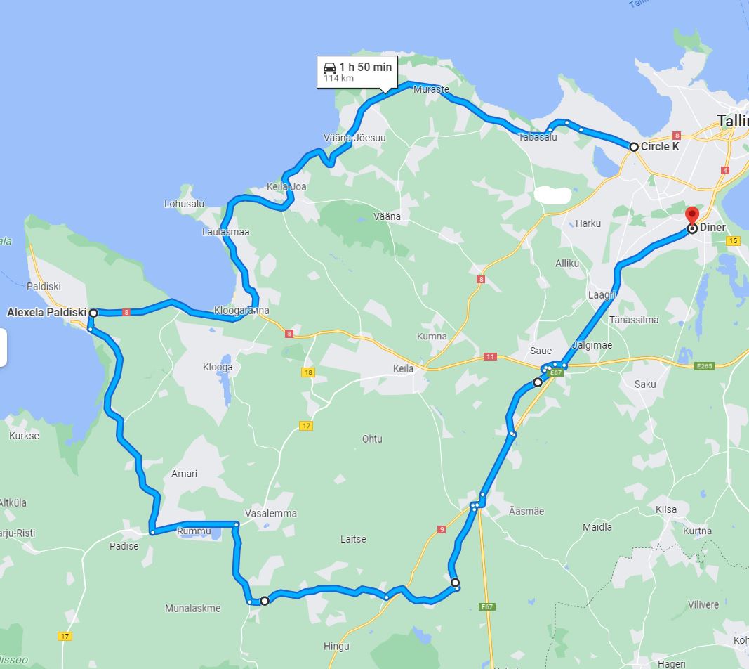 Homme (reede) õhtul väiksele ringile! Näiteks "klassikaline" Paldiski ring algusega Õismäe CircleK-st (Rocca Al Mares).