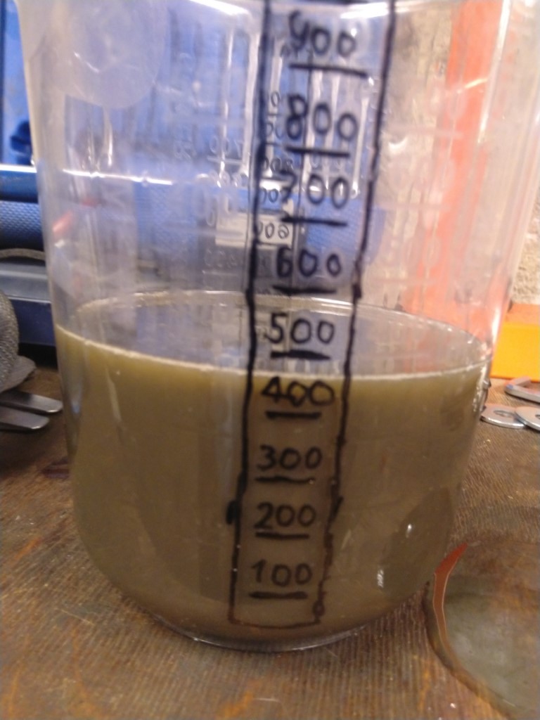 aga ei mina iial usu, et sul seal 620cc oli selle põhjal, mis kätte oled saanud. või siis sul värisevad need käed ikka hirmsal moel ja põranda pesemisega tuleb tõsisemalt tegelema hakata. miski 30cc võib jah mööda ja kaotsi minna, see on tavaline. aga sul on purgis miski 450 ühikut seal kõigest