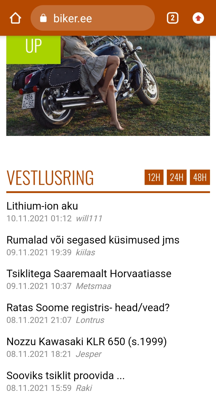 mul tekkis selline rumal küsimus, et miks mu eile tehtud teema ärandatud mootorrattast esilehel näha pole, mõtlen siis seda "vaadet":