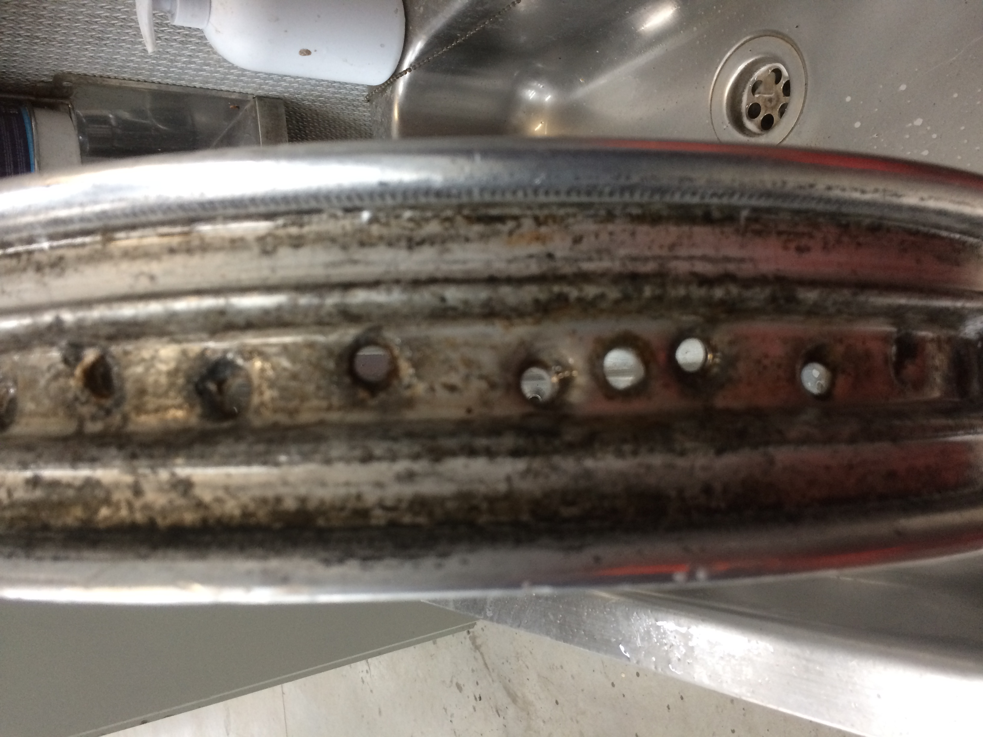 Siin juba vana kooslus laiali võetuna. Algul oli ikka rämedat peavalu kinni oksüdeerund nipplitega, lõpuks tulid 35 kodarat lahti tavalist lapikkruvikat kasutades täiesti muretult. Kui kodarad eemaldatud, siis tegin pöiale puhastuskuuri, ning avastasin “hambajäljed” pöialt. Kuna veljed jõudsid minuni põhjanaabritelt, siis muidugi väga ei imesta ![]()