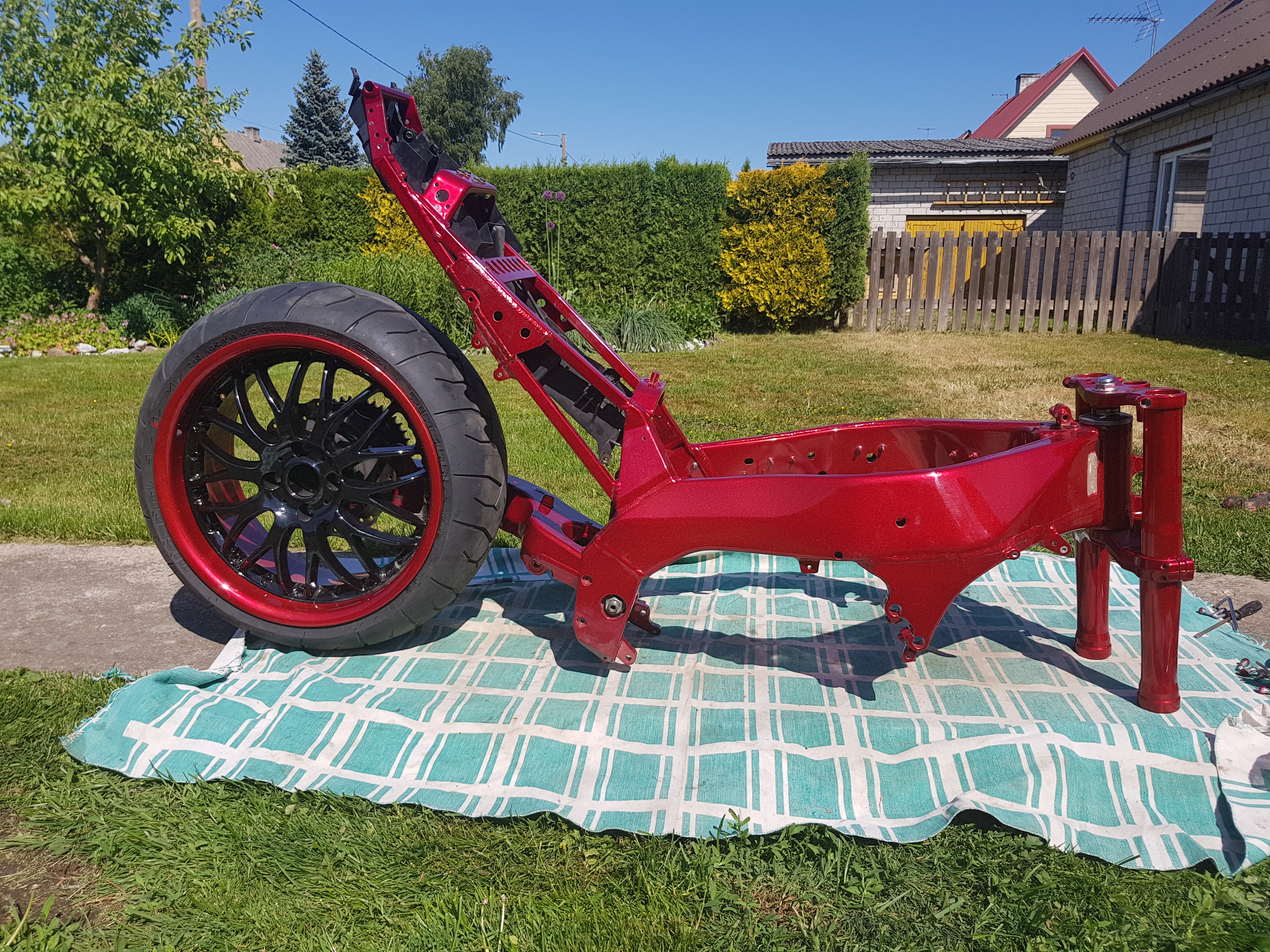 Mootor sai värvitud. Ratas hakkab vaikselt ilmet võtma.