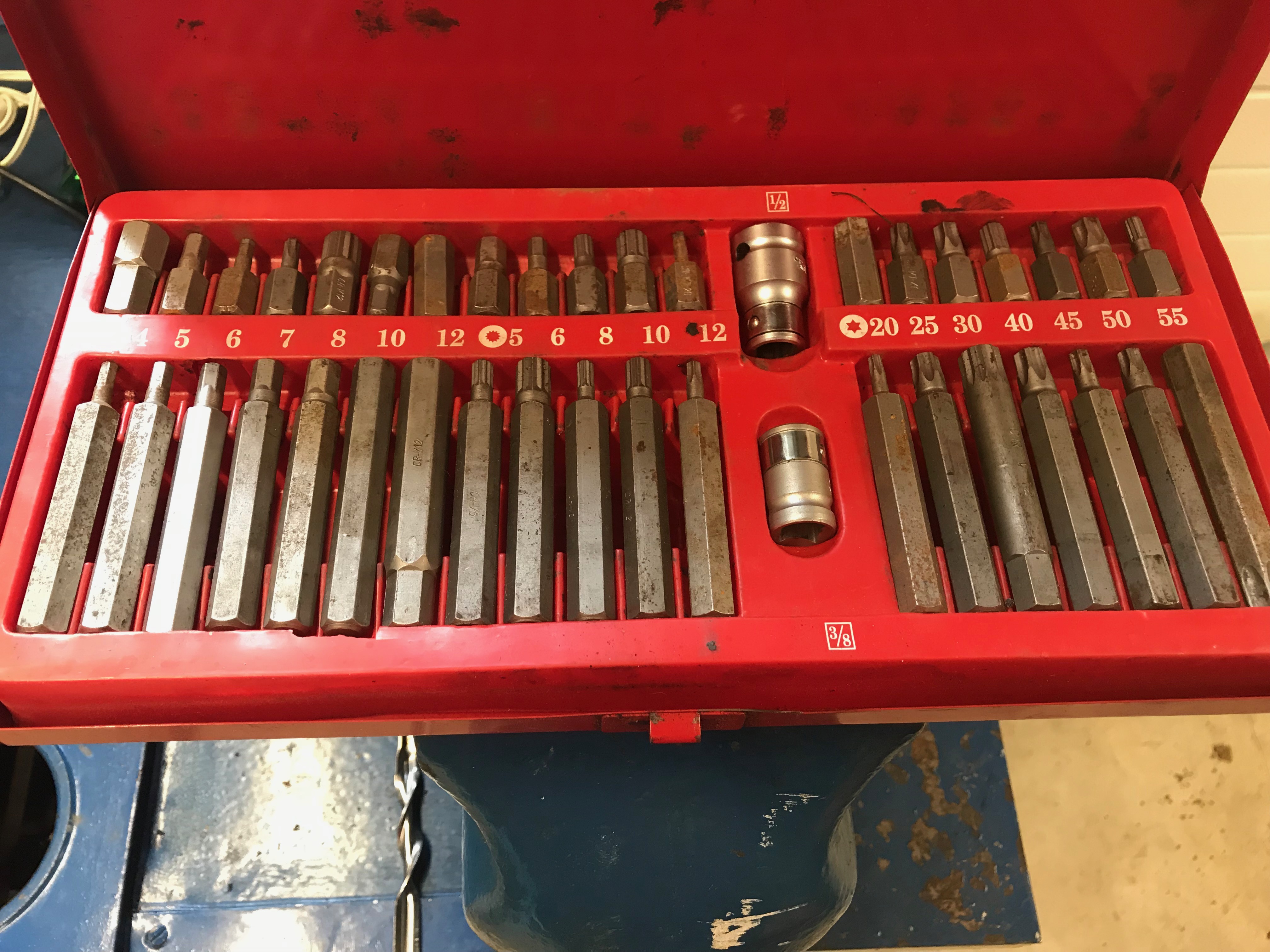 Ma oleks ka peaaegu mingi IKH suurema komplekti ära ostnud, aga vaatasin lisaks muule ka kohvrit, kuna ei seedi ka, et kõik kola kuskil üksteise otsas laiali on. Ei äratanud minus see hingede asemel pika painutatava plastosaga kohver usaldust ja sinna paika ta jäi. Kamasa soodukaid ka sel ajal ei leidnud ja täishinda ei raatsinud välja käia, kuigi ihusin tükk aega hammast. Kuna 1/2 padruneid oli kõige kibedamalt vaja, võtsin K-Rautast Stanley Experdi väiksema komplekti, kus siiski ka pikad padrunid sees ja sellega olen küll rahul olnud. Väga korralik kohver ka. Kusjuures Stanley pakub ka tihti odavamate komplektidega täielikku rämpskohvrit kaasa.
