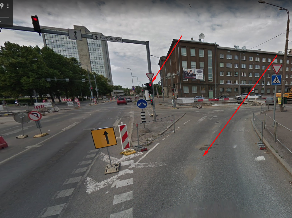 Kui antud kohas põleb juba punane ja sa alles lähened ristmikule,et vasakule pöörata,siis minu isikliku ja MNT versiooni järgi pead ootama järgmise rohelise tsüklini. Olukorda saaks muuta vasakule-paremale pöörde raja tekitamisega kui selle ette stoppjoont ei tehta.