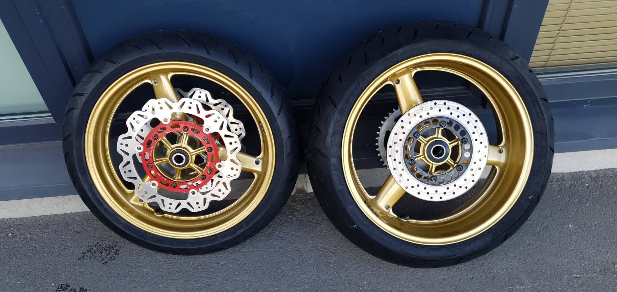 Veljed sain siis eile kätte. Kõik uued kettad, laagrid, simmerid, rehvid ja muidugi veljed käisid sirgestuses ja värvimises. Värviks tuli metallik-kuldne