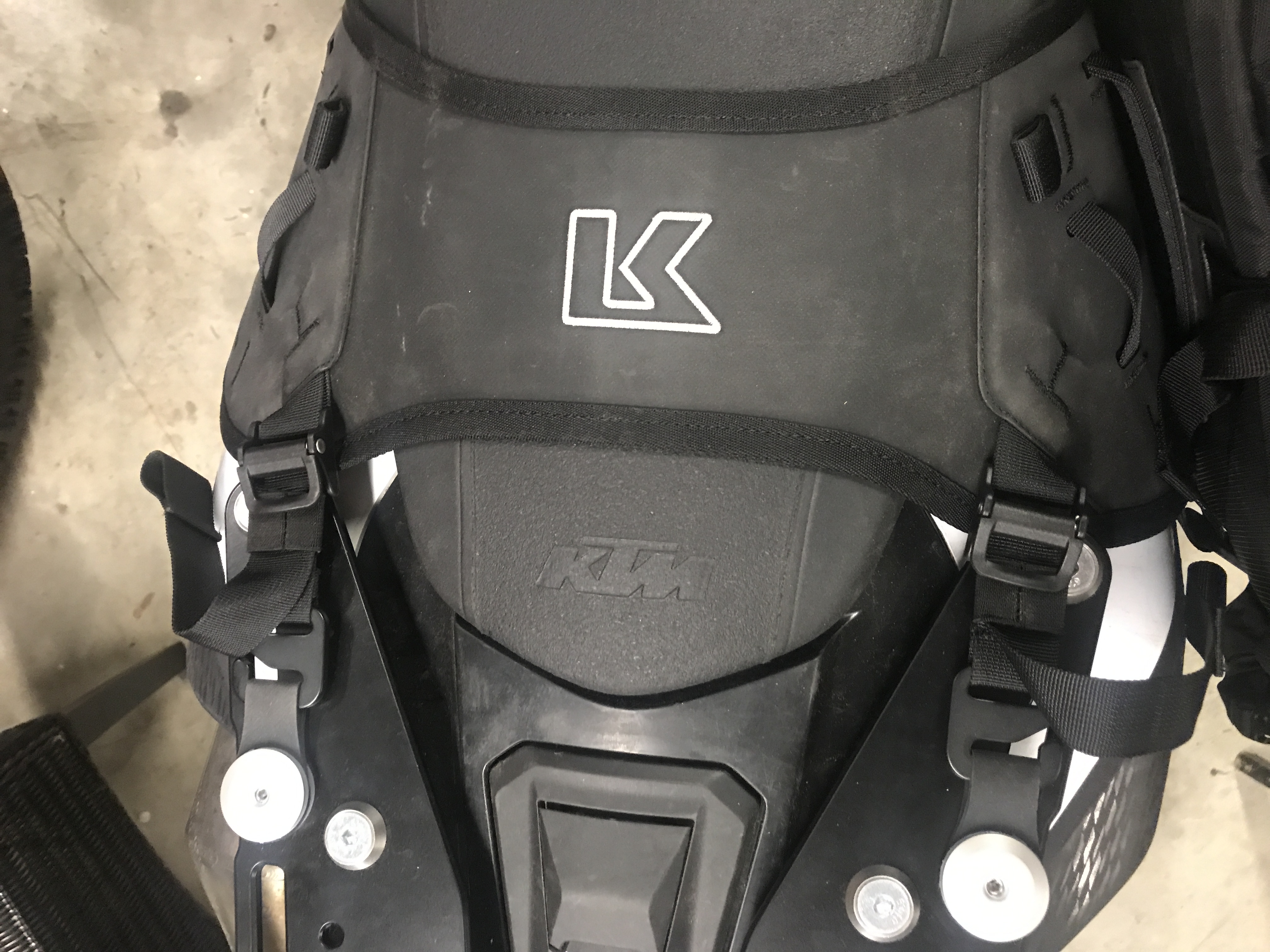 Kuna 690-l puudub tagaraam (on ainult paak), siis on kogu pakkide kandmise teema natuke komplitseeritud. Esiteks peaks arvestama, et paagi kinnituskohad kuluvad ära - eriti kui koormus on suur. Selle vastu on ravi: aftermarket poldi-/puksikomplektid. Ma pole sellist veel tellinud aga postitan siia lingi, kui olen sobiva komplekti välja valinud.