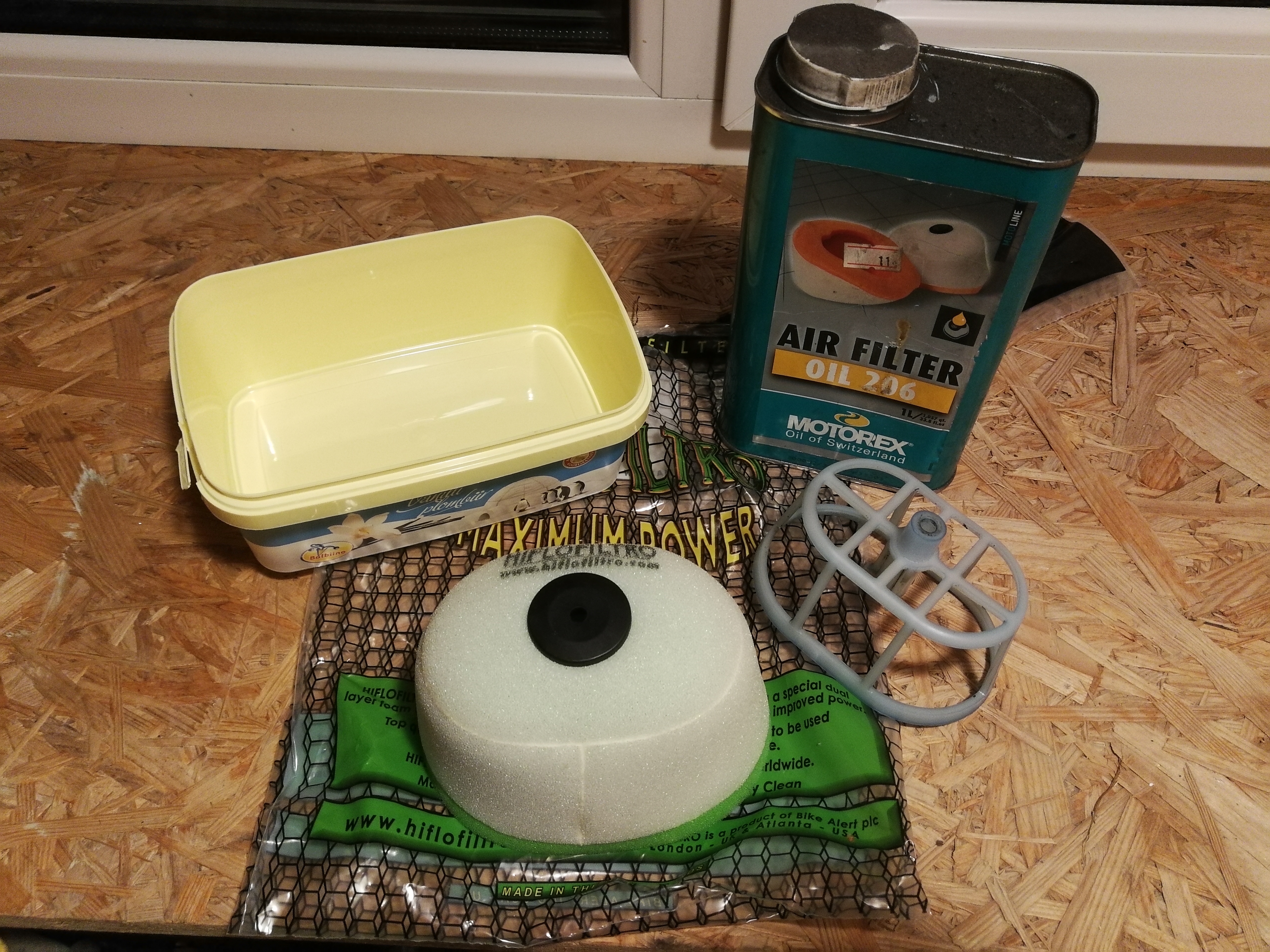 Sebisin Motardi Raidult HiFlo õhufiltri ning raasike õhufiltriõli. Naiselt panin pännu jäätisekarbi.